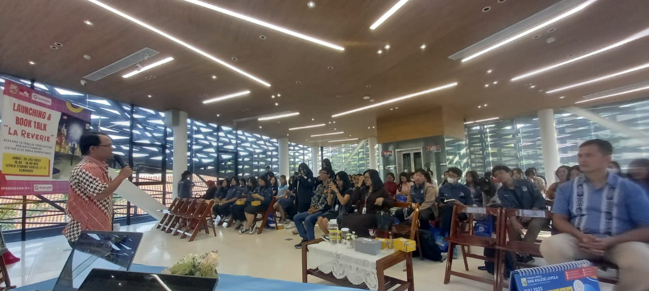Semarang - SMA Kolese Loyola bekerja sama dengan Elex Media Komputindo dan Gramedia Setiabudi Semarang telah resmi merilis sebuah kumpulan cerpen “La Reverie” pada Jumat, 28 Juli 2023 kemarin. “La Reverie” adalah hasil karya naskah 15 penulis terpilih yang merupakan siswa-siswi SMA Kolese Loyola yang mulai dibuat setelah kegiatan perpustakaan yaitu Workshop Penulisan Fiksi pada 3 Maret lalu.